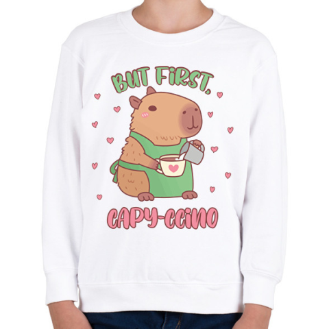 1 kép PRINTFASHION Capy-ccino - Gyerek pulóver - Fehér