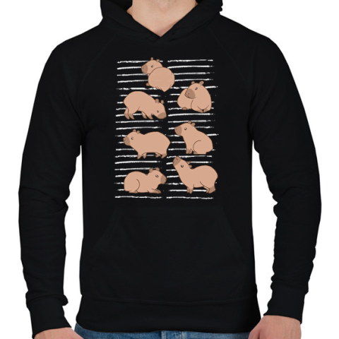 1 kép PRINTFASHION Capybara áradat - Férfi kapucnis pulóver - Fekete