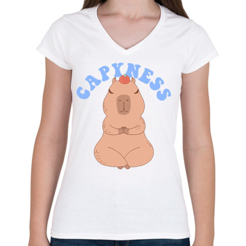 1 kép PRINTFASHION Capybara - Capyness - Női V-nyakú póló - Fehér