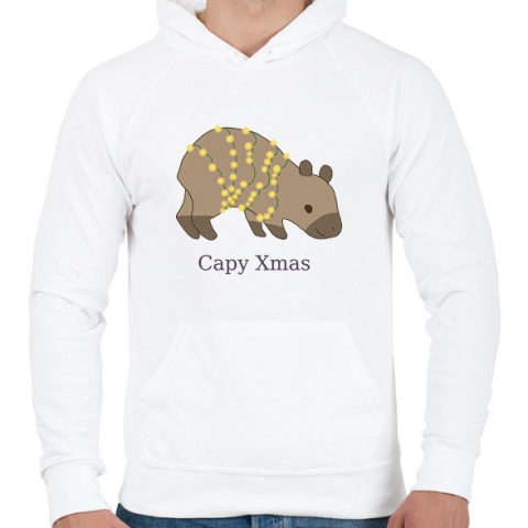 1 kép PRINTFASHION capybara család - karácsonyi fény - Férfi kapucnis pulóver - Fehér