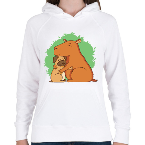 1 kép PRINTFASHION Capybara és mopsz - Női kapucnis pulóver - Fehér