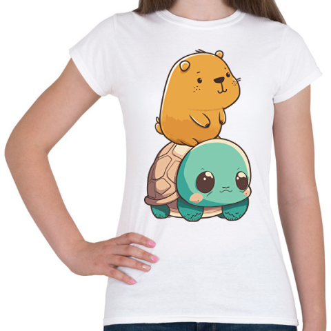 1 kép PRINTFASHION Capybara és teknős - Női póló - Fehér
