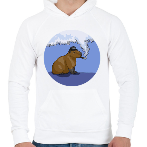 1 kép PRINTFASHION Capybara - gentleman - Férfi kapucnis pulóver - Fehér