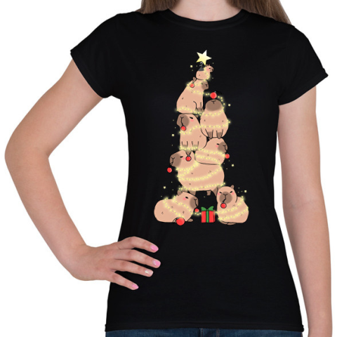 1 kép PRINTFASHION capybara karácsonyfa - Női póló - Fekete