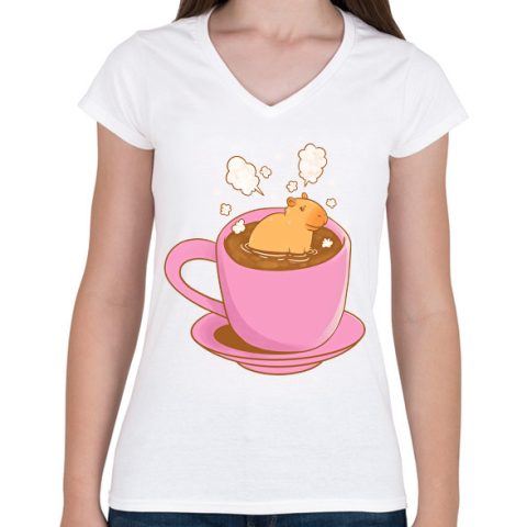 1 kép PRINTFASHION Capybara kávéban - Női V-nyakú póló - Fehér