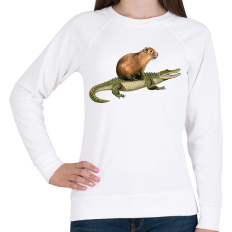 1 kép PRINTFASHION Capybara krokodil háton - Női pulóver - Fehér