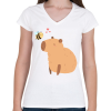 1 kép PRINTFASHION Capybara méhecskével - Női V-nyakú póló - Fehér