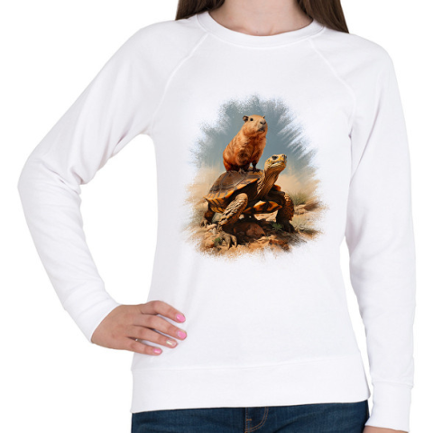 1 kép PRINTFASHION Capybara teknős háton - Női pulóver - Fehér