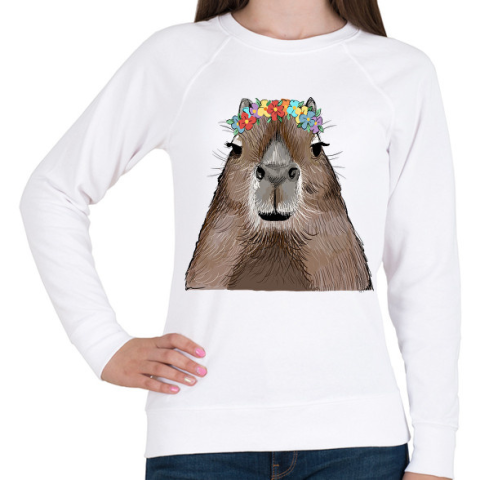 1 kép PRINTFASHION Capybara virágkoszorúval - Női pulóver - Fehér