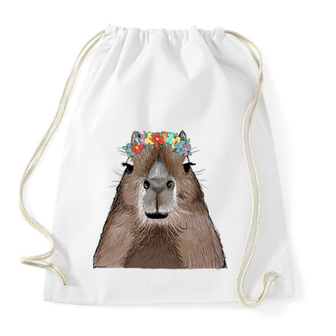 1 kép PRINTFASHION Capybara virágkoszorúval - Sportzsák, Tornazsák - Fehér