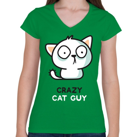 1 kép PRINTFASHION Cat guy - Női V-nyakú póló - Zöld