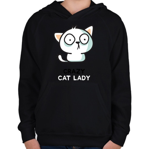 1 kép PRINTFASHION Cat lady - Gyerek kapucnis pulóver - Fekete