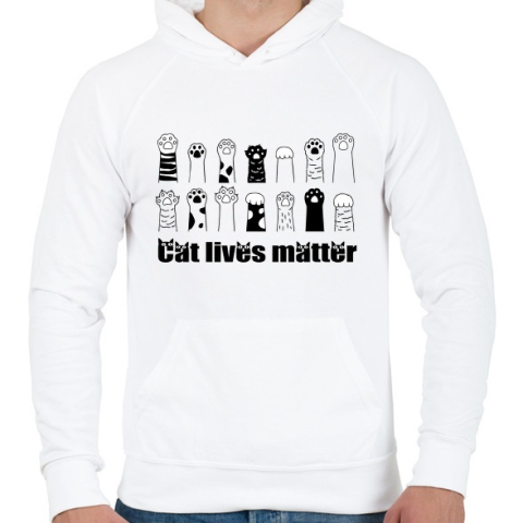 1 kép PRINTFASHION Cat lives matter - Férfi kapucnis pulóver - Fehér