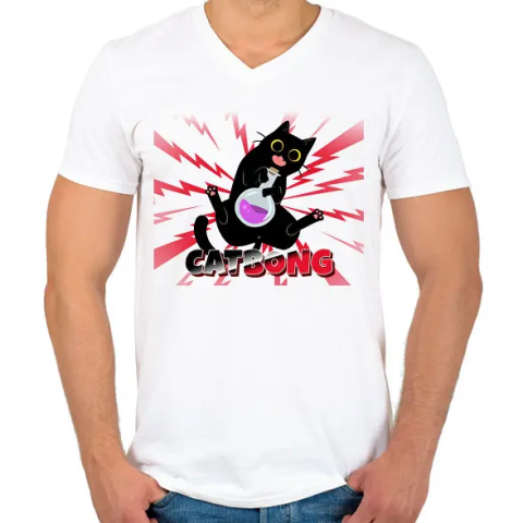 1 kép PRINTFASHION CATBONG - Férfi V-nyakú póló - Fehér