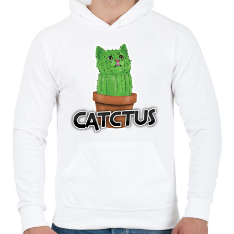 1 kép PRINTFASHION Catctus - Férfi kapucnis pulóver - Fehér