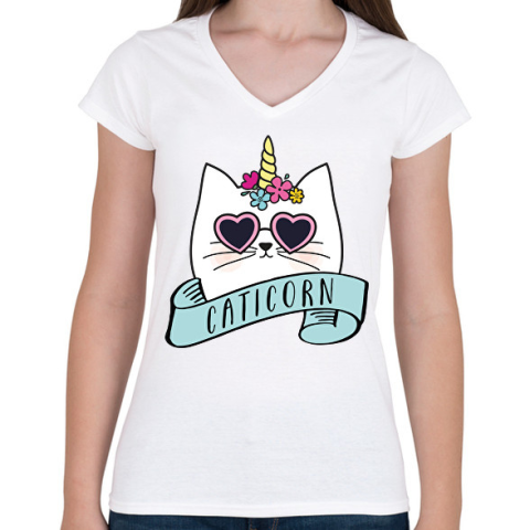 1 kép PRINTFASHION Caticorn - Női V-nyakú póló - Fehér