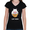 1 kép PRINTFASHION CATMOM - Női V-nyakú póló - Fekete