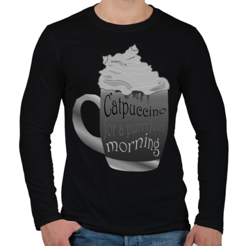 1 kép PRINTFASHION catpuccinoBW - Férfi hosszú ujjú póló - Fekete