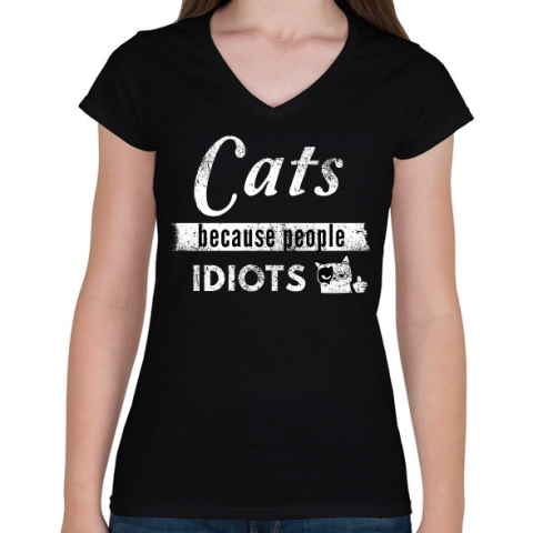 1 kép PRINTFASHION CATS - Női V-nyakú póló - Fekete