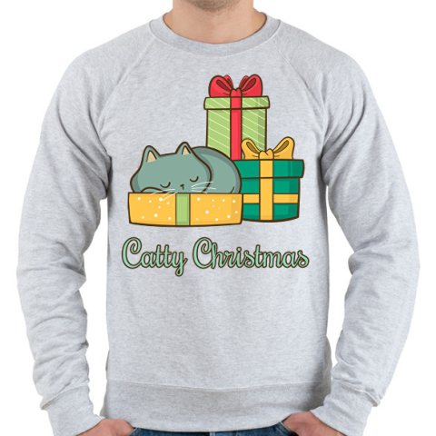 1 kép PRINTFASHION Catty Christmas - Férfi pulóver - Sport szürke