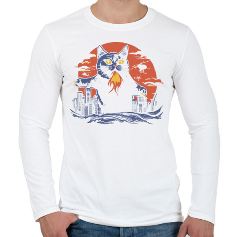 1 kép PRINTFASHION Catzilla - Férfi hosszú ujjú póló - Fehér