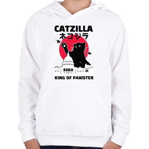 1 kép PRINTFASHION Catzilla - Gyerek kapucnis pulóver - Fehér