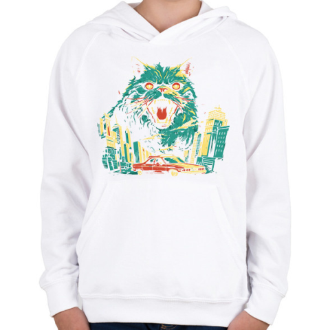 1 kép PRINTFASHION Catzilla - Gyerek kapucnis pulóver - Fehér