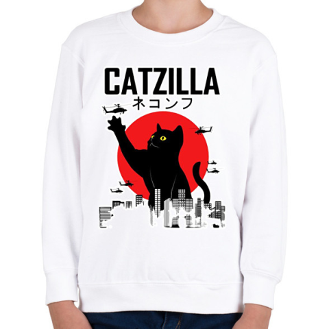 1 kép PRINTFASHION Catzilla - Gyerek pulóver - Fehér