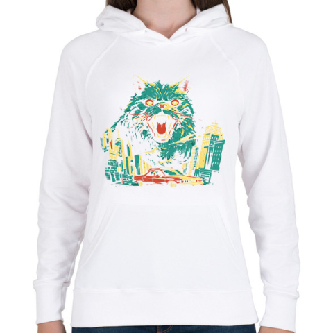 1 kép PRINTFASHION Catzilla - Női kapucnis pulóver - Fehér