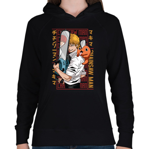 1 kép PRINTFASHION Chainsaw man - Női kapucnis pulóver - Fekete