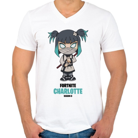1 kép PRINTFASHION Charlotte - Fortnite Season 8 - Férfi V-nyakú póló - Fehér