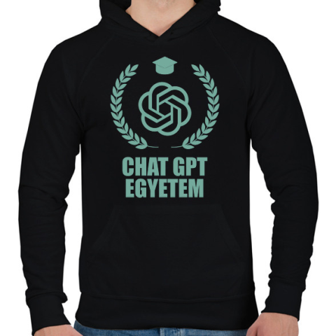 1 kép PRINTFASHION Chatgpt egyetem - Férfi kapucnis pulóver - Fekete
