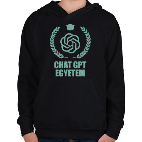 1 kép PRINTFASHION Chatgpt egyetem - Gyerek kapucnis pulóver - Fekete