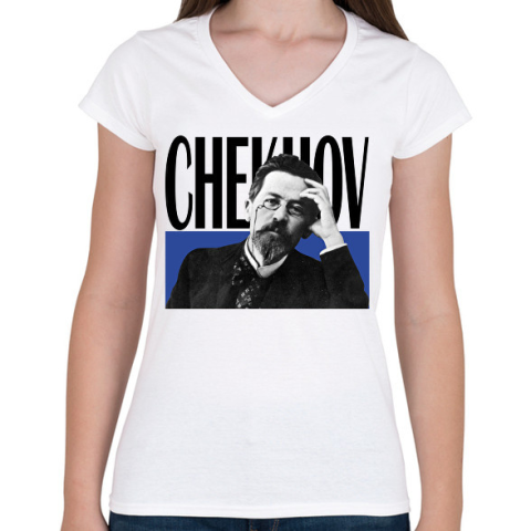 1 kép PRINTFASHION Chekhov - Önarckép - Női V-nyakú póló - Fehér