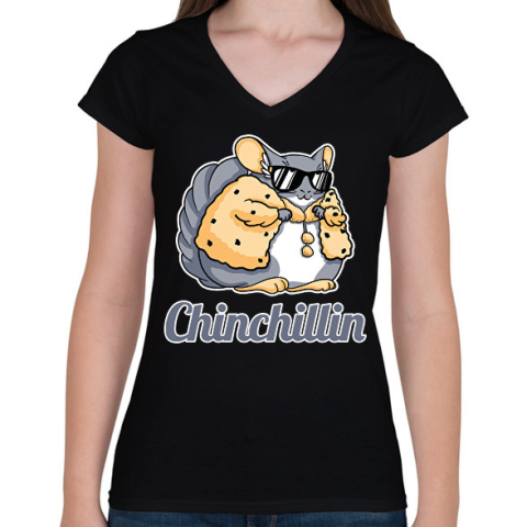 1 kép PRINTFASHION Chinchillin - Női V-nyakú póló - Fekete