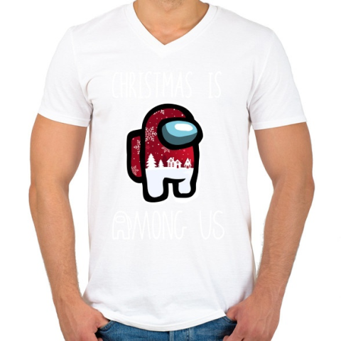 1 kép PRINTFASHION Christmas is Among Us - Férfi V-nyakú póló - Fehér