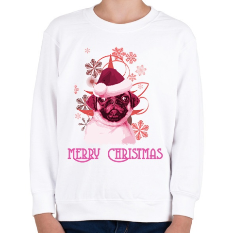 1 kép PRINTFASHION christmas pug - Gyerek pulóver - Fehér