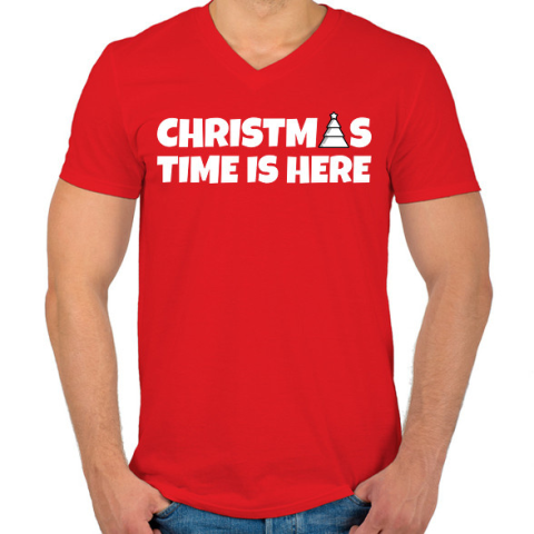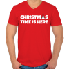 1 kép PRINTFASHION CHRISTMAS TIME IS HERE - Férfi V-nyakú póló - Piros