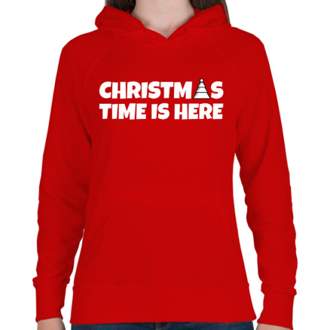 1 kép PRINTFASHION CHRISTMAS TIME IS HERE - Női kapucnis pulóver - Piros