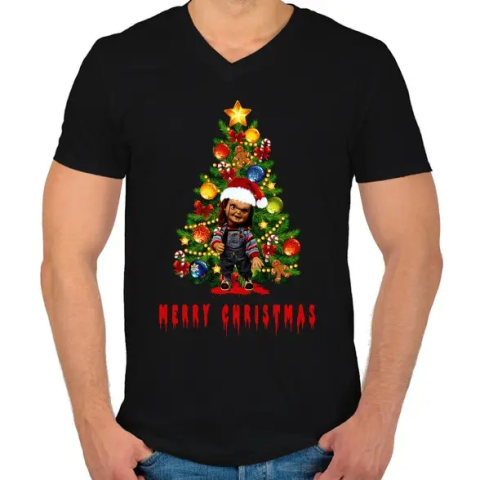 1 kép PRINTFASHION chucky christmas - Férfi V-nyakú póló - Fekete