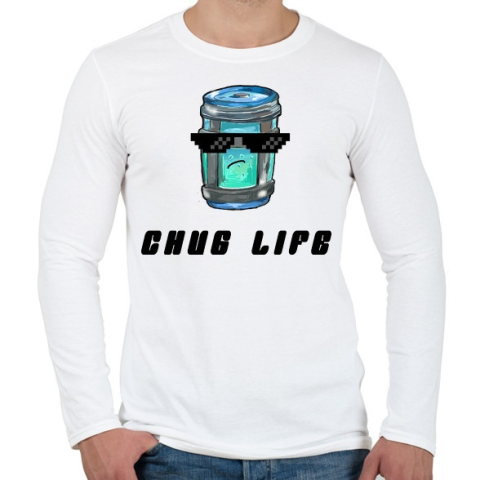 1 kép PRINTFASHION Chug Life - Fortnite - Férfi hosszú ujjú póló - Fehér