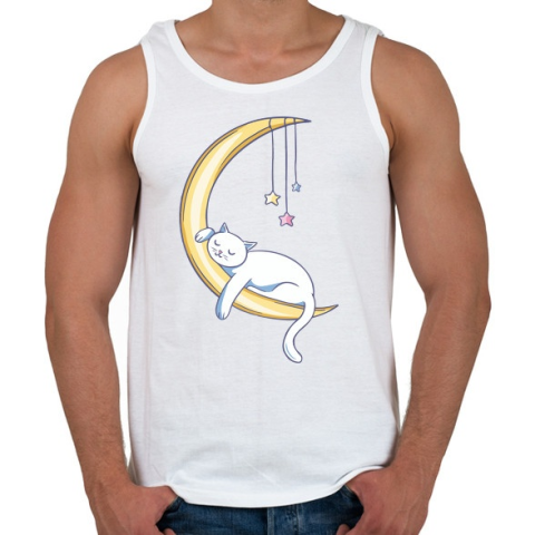 1 kép PRINTFASHION Cica a holdon alszik mese - Férfi atléta - Fehér