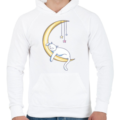 1 kép PRINTFASHION Cica a holdon alszik mese - Férfi kapucnis pulóver - Fehér