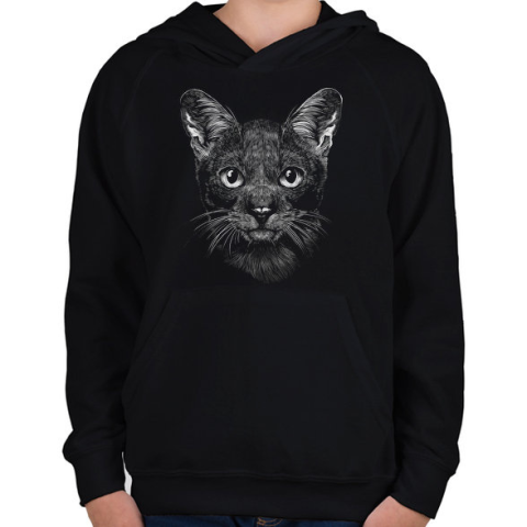 1 kép PRINTFASHION Cica arc sötét alaphoz - Gyerek kapucnis pulóver - Fekete
