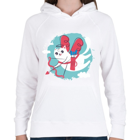 1 kép PRINTFASHION Cica - cat is in the air ! - Női kapucnis pulóver - Fehér
