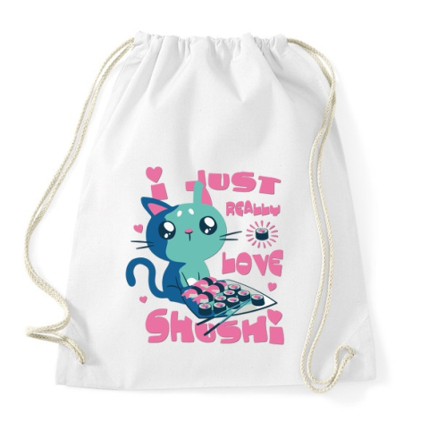 1 kép PRINTFASHION Cica - Csak igazán szeretem a shushit - Sportzsák, Tornazsák - Fehér