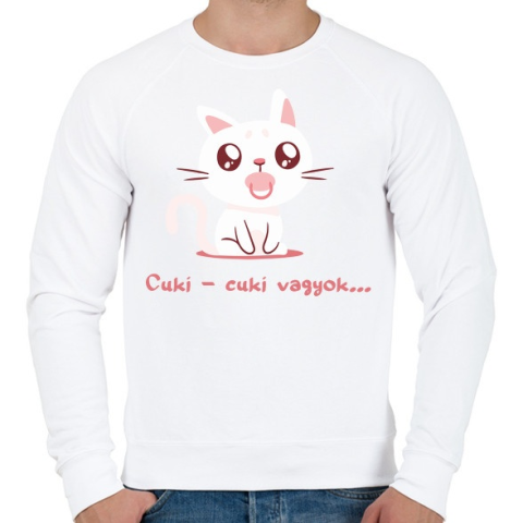 1 kép PRINTFASHION Cica cuki vagyok - Férfi pulóver - Fehér