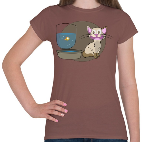 1 kép PRINTFASHION Cica és a Hal - Női póló - Mogyoróbarna