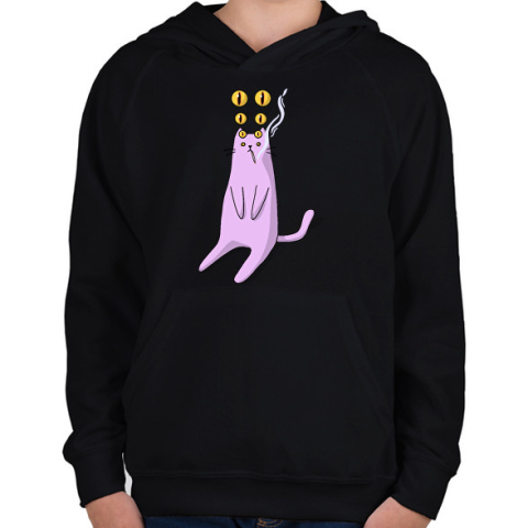 1 kép PRINTFASHION Cica és cigi - Gyerek kapucnis pulóver - Fekete