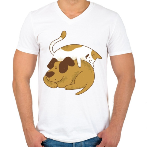 1 kép PRINTFASHION Cica és kutya barátság - Férfi V-nyakú póló - Fehér